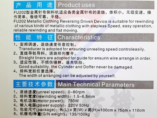 FU202型金屬針布倒料機(jī)的產(chǎn)品詳細(xì)介紹: