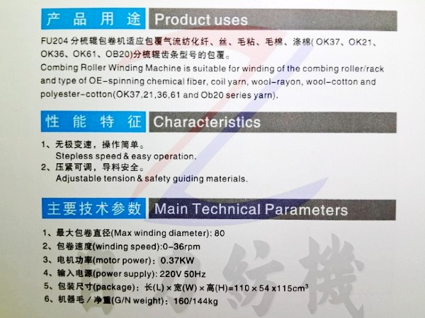 FU204型分梳輥包卷機(jī)的產(chǎn)品詳細(xì)介紹: